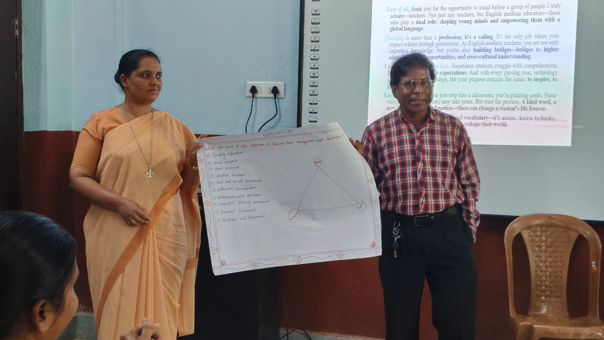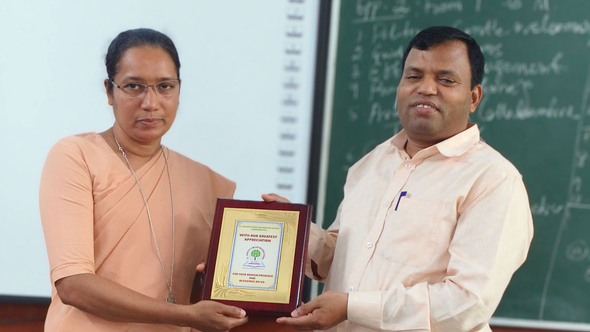 Fr. Madhan also shared insightful thoughts during the session. He emphasised that teachers should always strive to be creative in their teaching methods, explore new ideas, and think beyond the textbook. He underlined the importance of building positive and healthy relationships with students and parents, which play a vital role in the child’s holistic development. He also referred to the Right to Education (RTE) Act, reminding us of our duty to provide inclusive and quality education to every child.